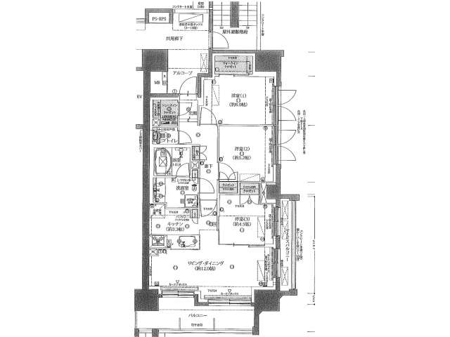 | 詳細間取 | 3LDK (洋6帖×1、洋5.2帖×1、洋4.5帖×1) | ||