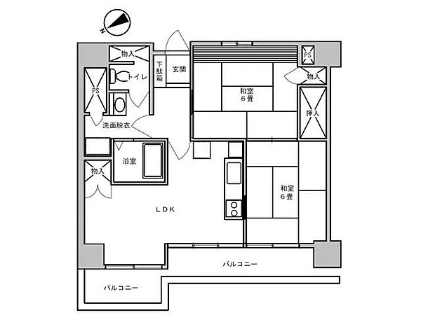 | 詳細間取 | 2LDK (和6帖×2) | ||