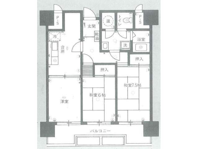 | 詳細間取 | 3DK (和6帖×1、和7.5帖×1、洋6帖×1) | ||